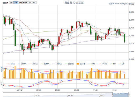 黃金即時走勢可以到玩股網國際股市頁面看,中間靠下面的地方有黃金期貨報價