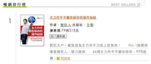多謝大家的支持,俺的新書在博客來已經連四週是商業理財類不動如山的冠軍了。