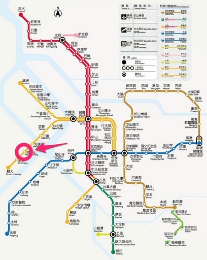 “台北捷運新莊線-頭前庄站1號出口,往指示牌瀚品酒店(中正路)方向前進,約3~5分鐘可到達”